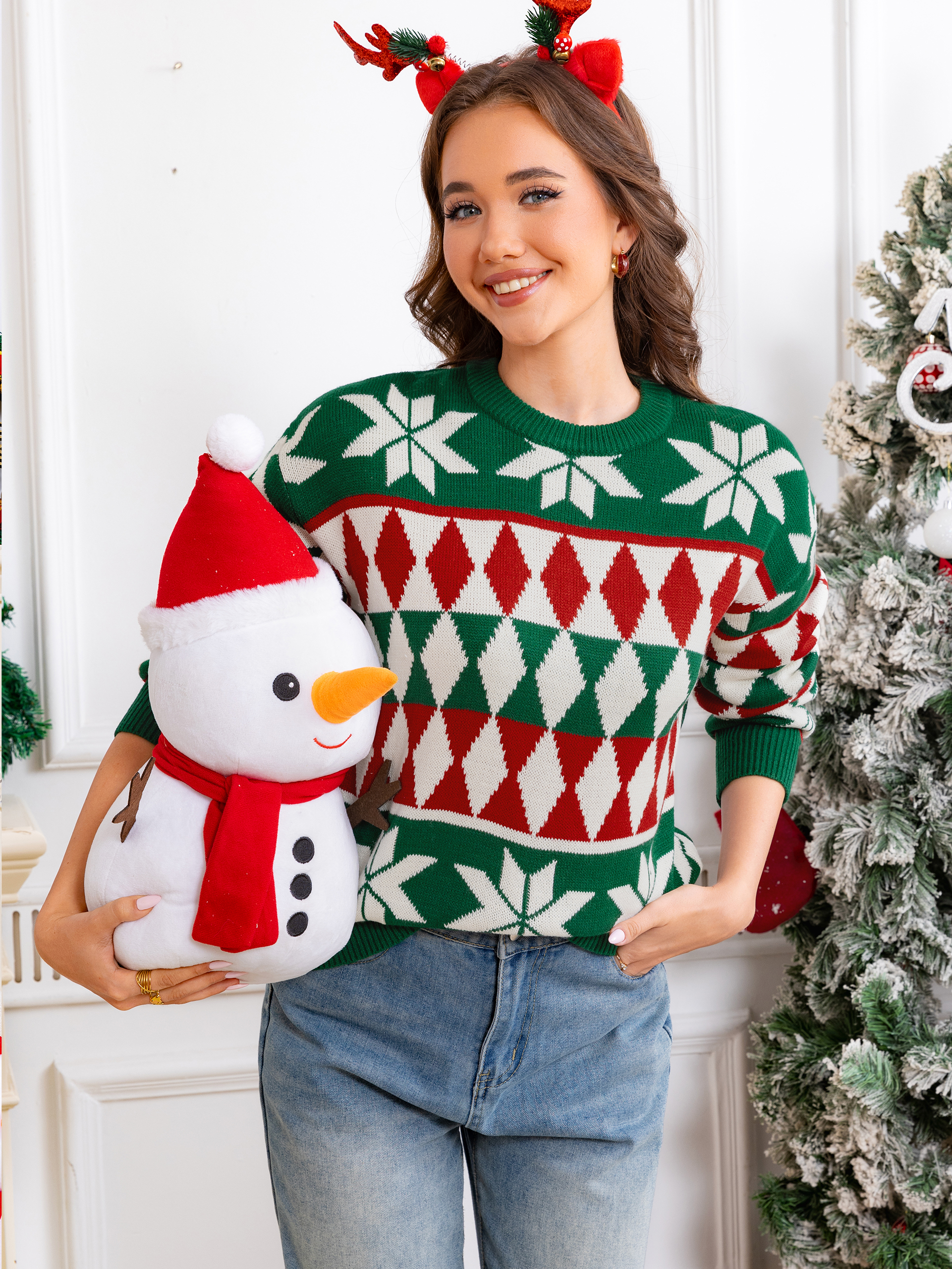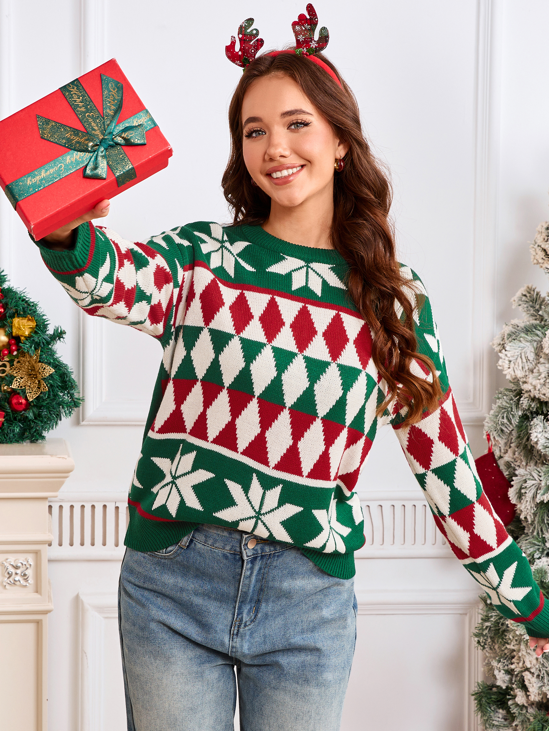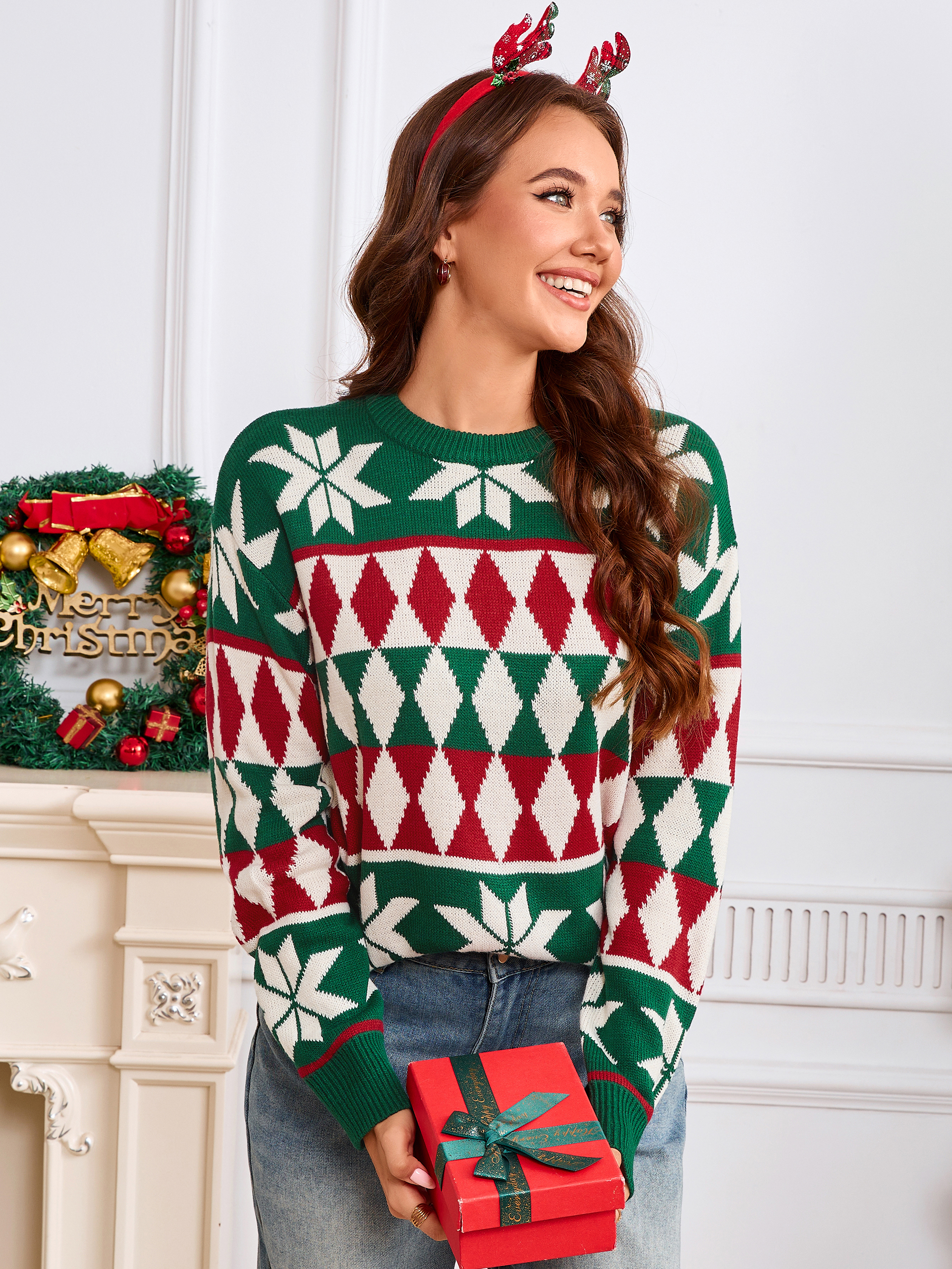 Argyle Snowflake Knit Christmas Sweater