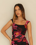 Floral Off Shoulder Mesh Bodycon Maxi Dress