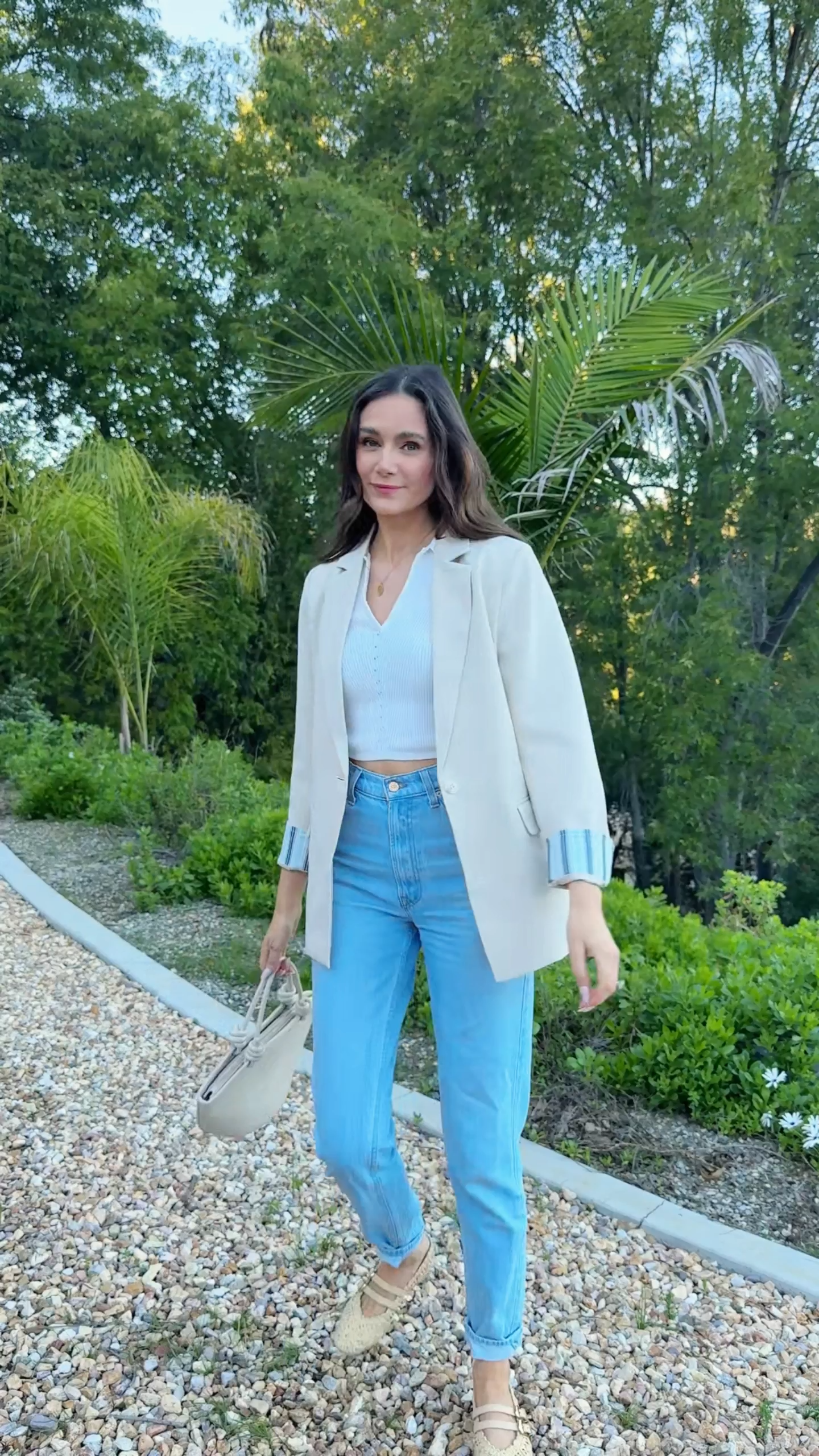 Embrace a sense of sharp grace with this notched lapel blazer. Its structured yet lightweight fabric and unique striped cuffs create a professional look that moves beautifully from office to leisure.
